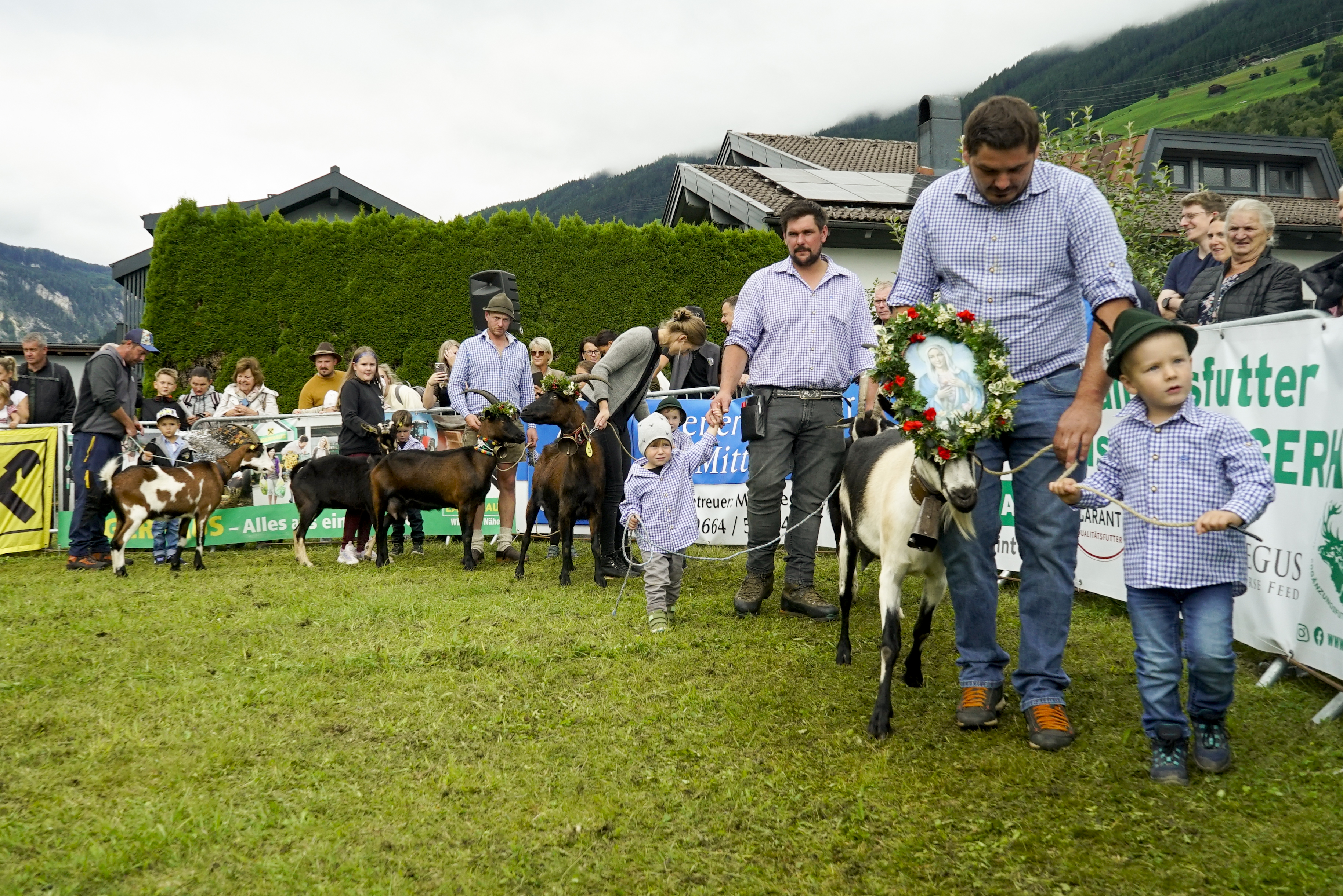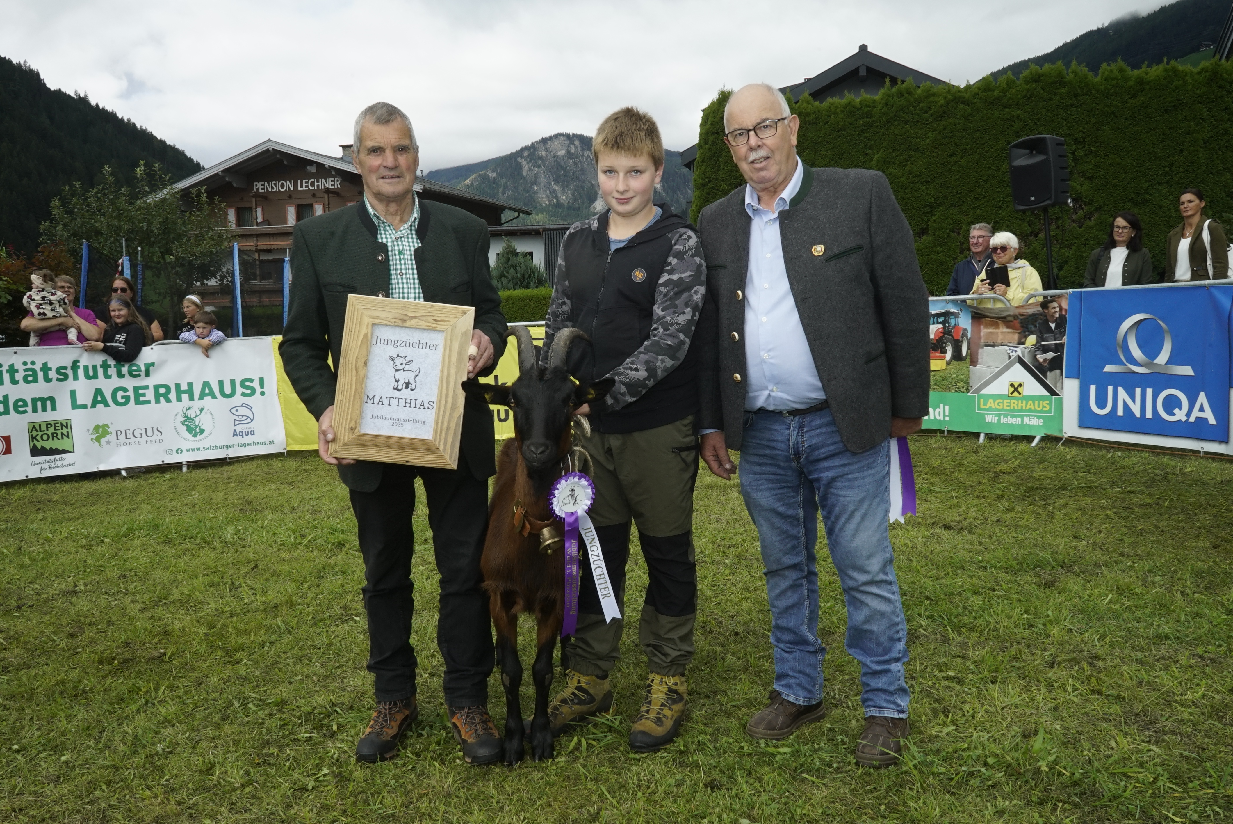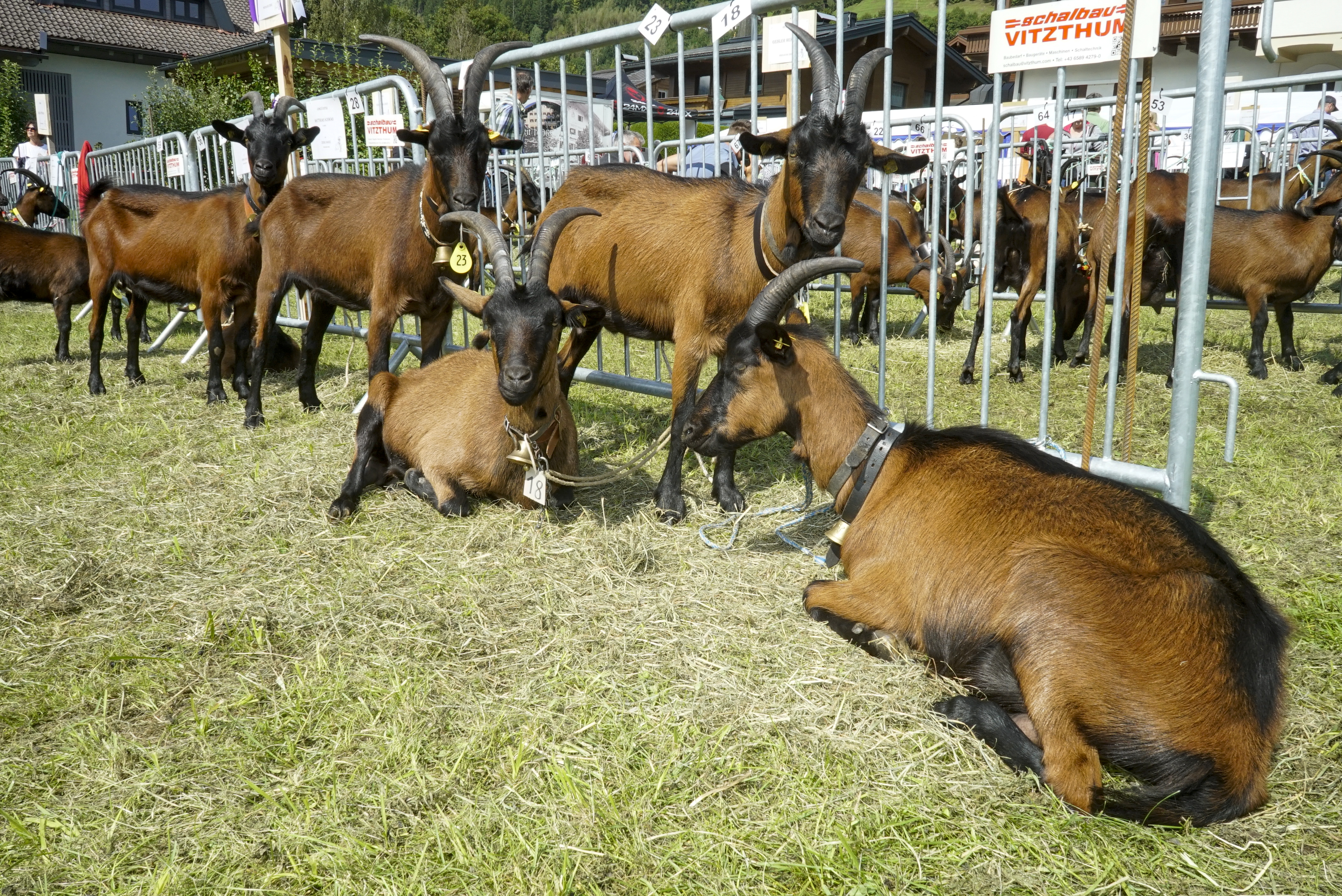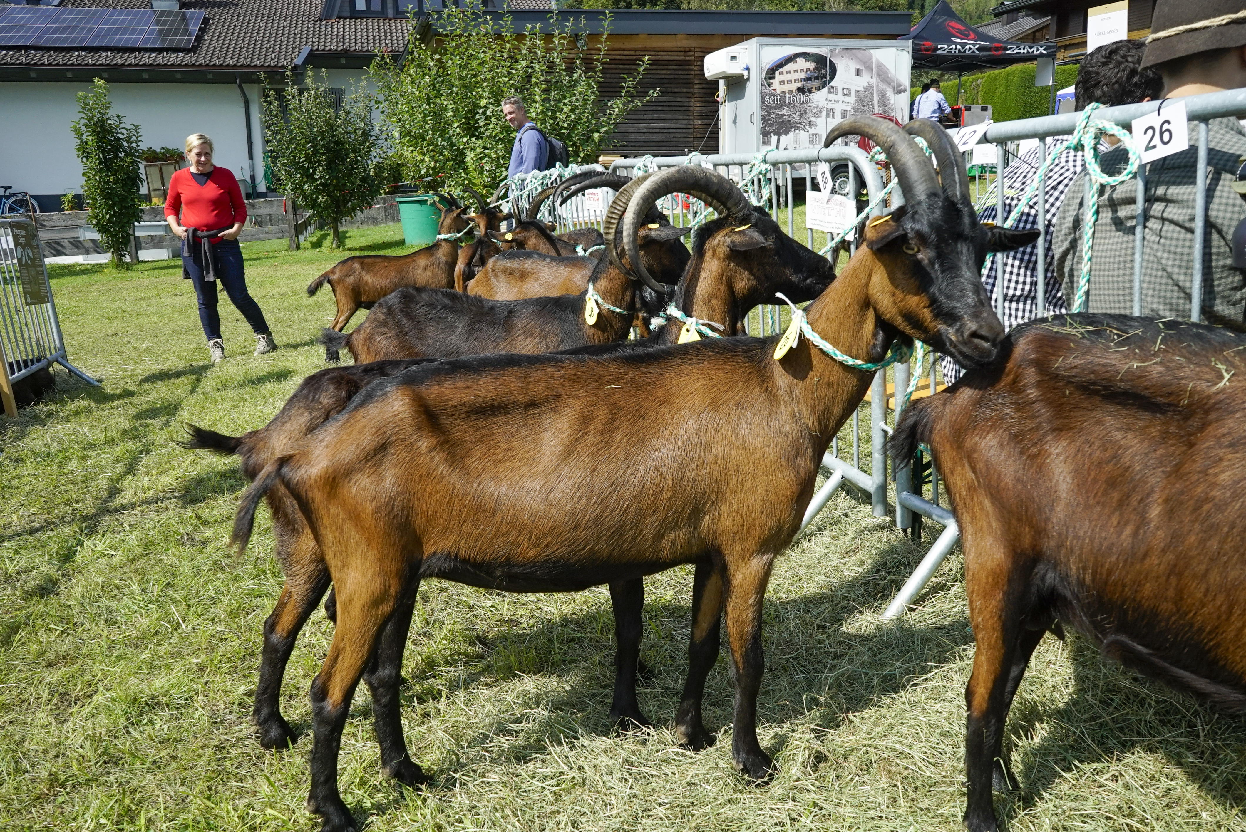 Neben den Pinzgauer Ziegen wurden auch Schaubilder anderer Rassen präsentiert, die das Programm auflockerten. Darunter waren die Tauernschecken-Ziegen vom Betrieb Schernthaner aus Neukirchen, die Pinzgauer Strahlenziegen vom Betrieb Stöckl in Wald im Pinzgau sowie die Pfauenziegen vom Betrieb Wechselberger aus Uttendorf.