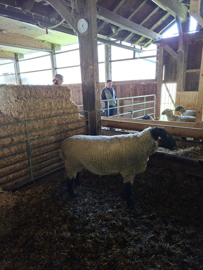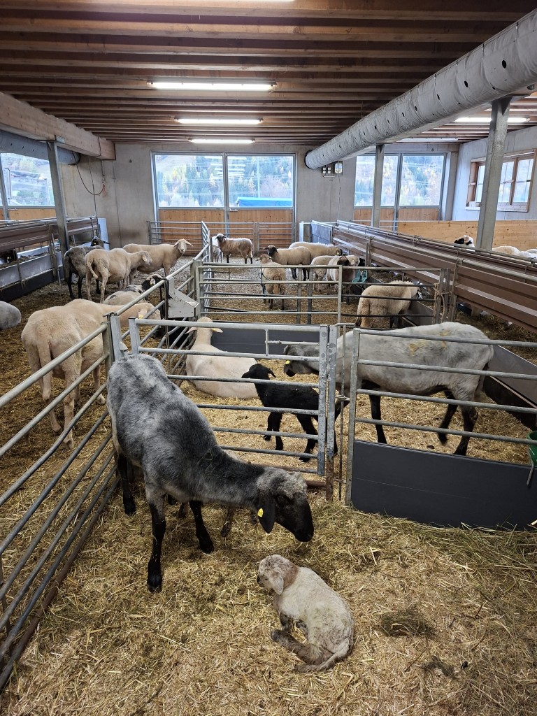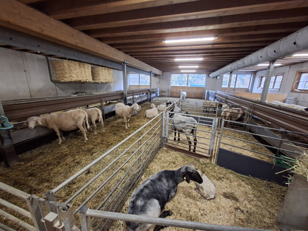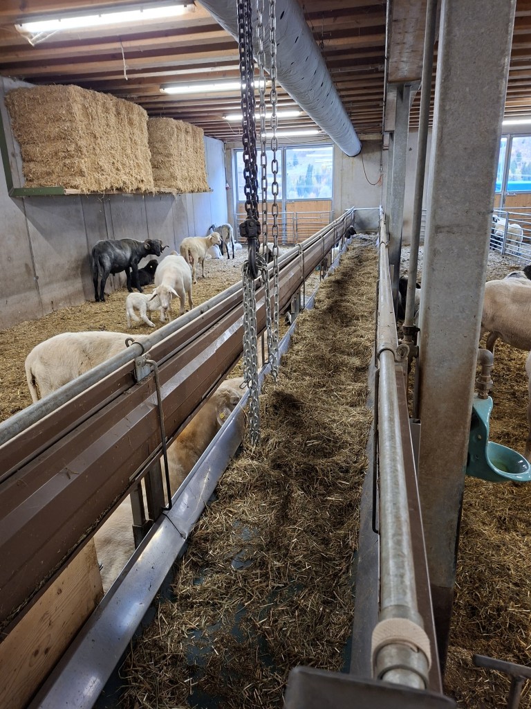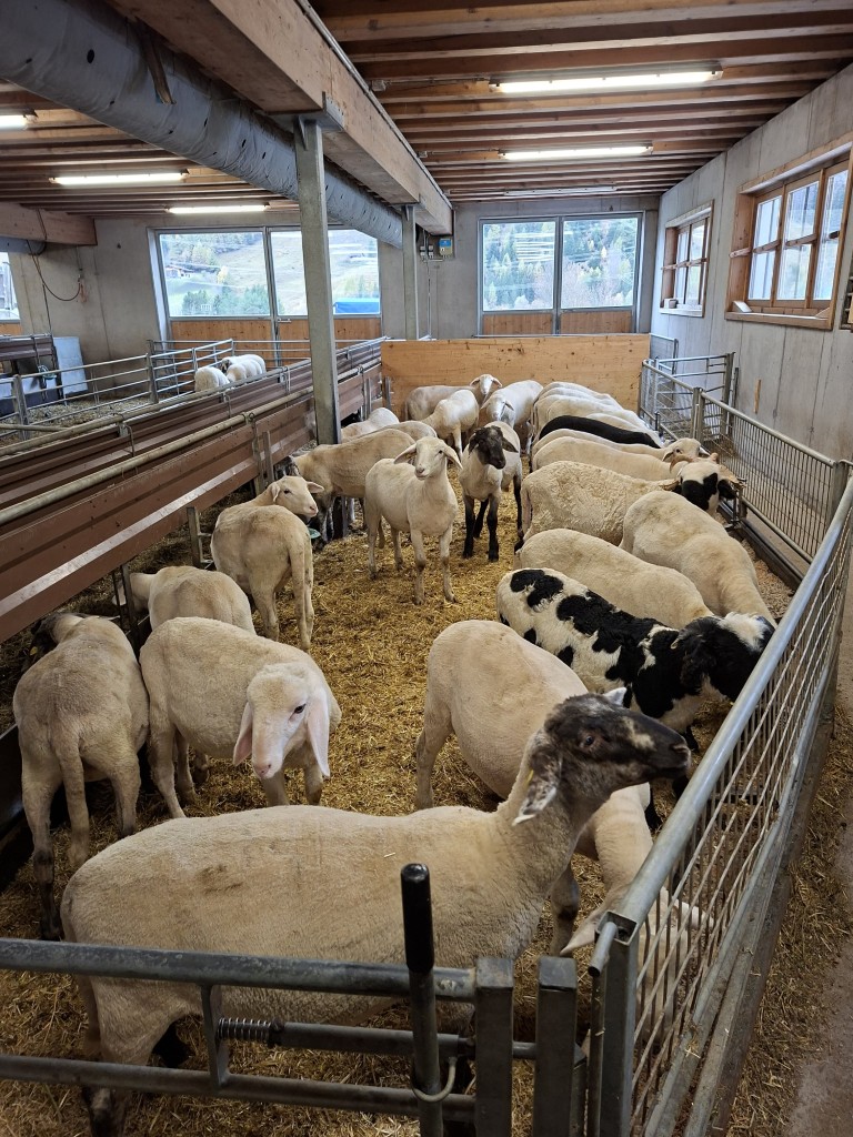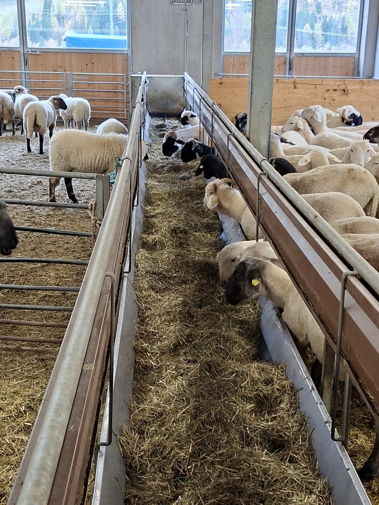 Den Abschluss bildete der Besuch bei Familie Steiner, die Tiroler Steinschafe, Berrichon du Cher, Walliser Schwarznasenschafe sowie Passeirer Ziegen züchtet. Gefüttert werden die Tiere über zwei Förderbänder und die Futtermischung erfolgt mittels stationärem Futtermischwagen. Ergänzt wird die Tierhaltung durch Noriker und Tiroler Grauvieh.