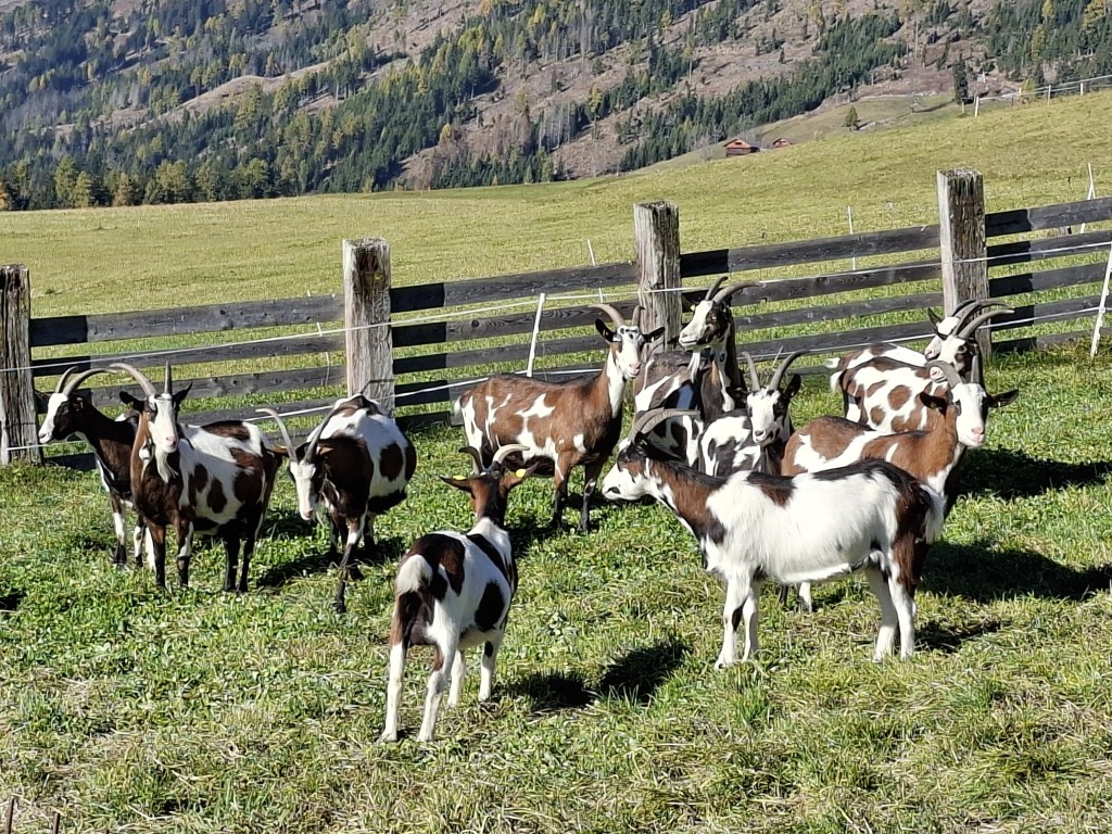Am Sonntag wurde der Betrieb der Familie Reiter in Anras besichtigt. Dort werden 20 Juraschafe, 40 Kärntner Brillenschafe und 20 Tauernschecken am Betrieb gehalten. Tochter Sabine ist auch als Zuchtwartin und Kommissionsmitglied bei den Tauernschecken für den Salzburger Verband im Einsatz. Der Betrieb umfasst 14 ha, davon 4,5 ha Pacht. Zusätzlich werden fünf Kühe mit Ammenkälbern gehalten. Auch auf diesem Betrieb ist das Thema Wolf spürbar, weshalb die Ziegen im Sommer nicht mehr auf die Alm getrieben werden.